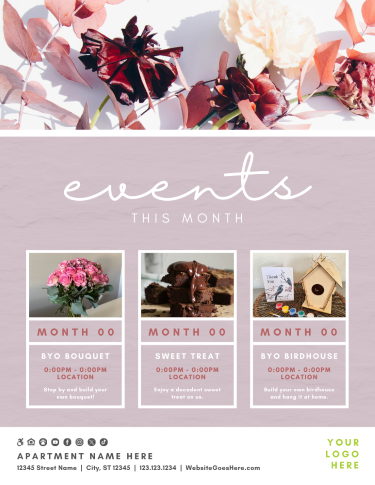 Host a refined, hands-on resident event that blends fresh florals and sweet treats, inviting guests to create their own bouquets and/or decorate mini cakes to take home. Equal parts creative and cozy, this experience adds color, indulgence, and connection to the late-winter season in a way that’s welcoming for everyone.